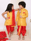 KID1 Festive Jacquard Kurti Dhoti Set For Girls With Festive Jacquard Sherwani Dhoti For Boys - Yellow